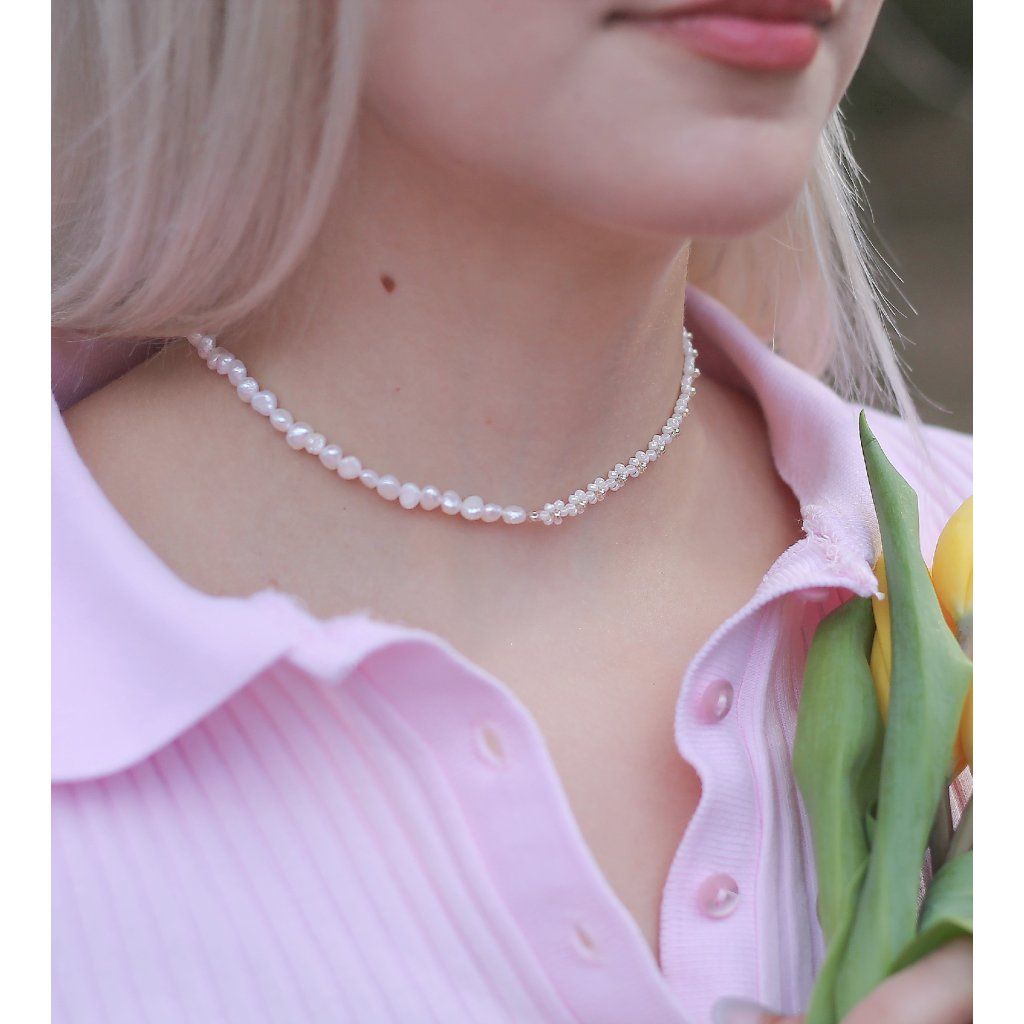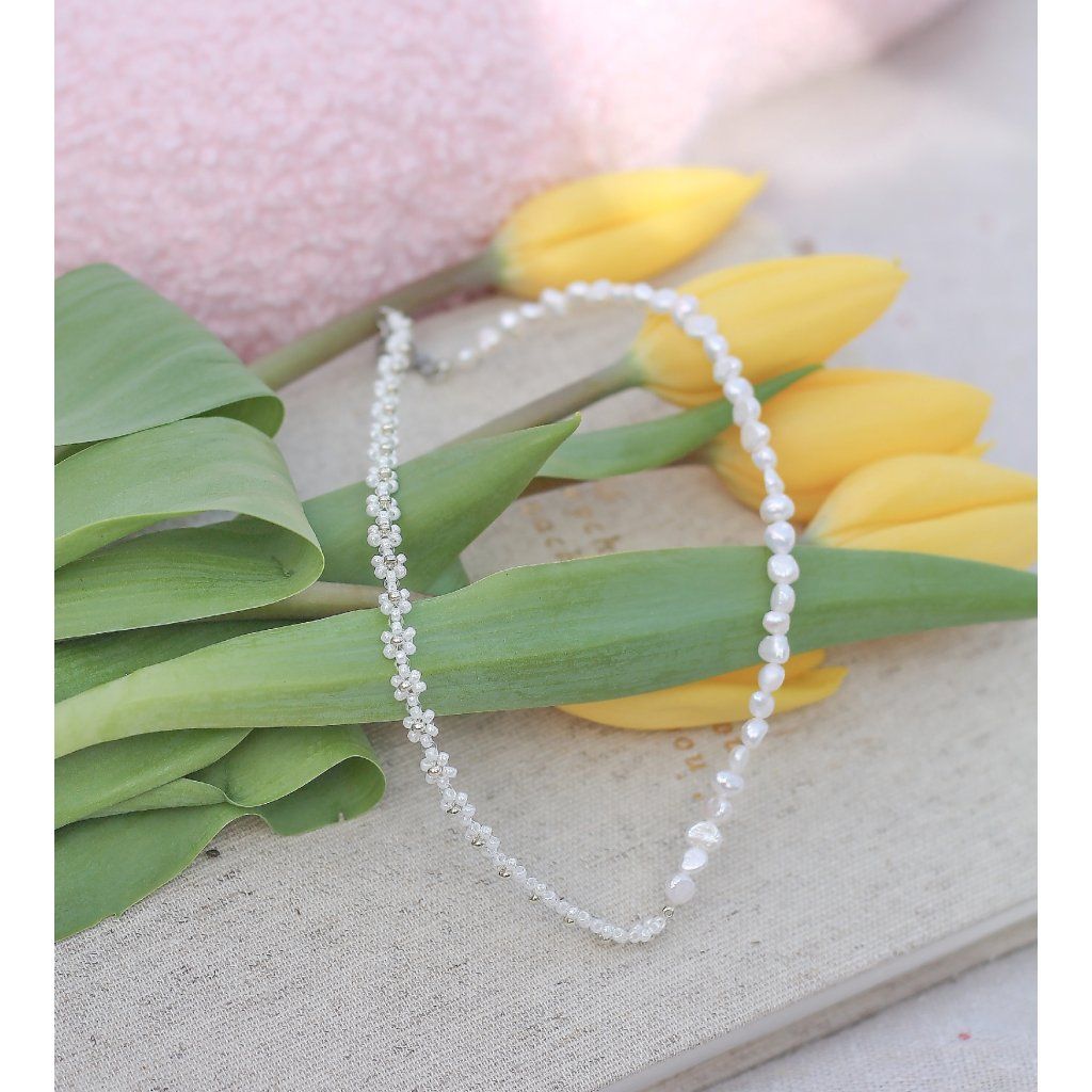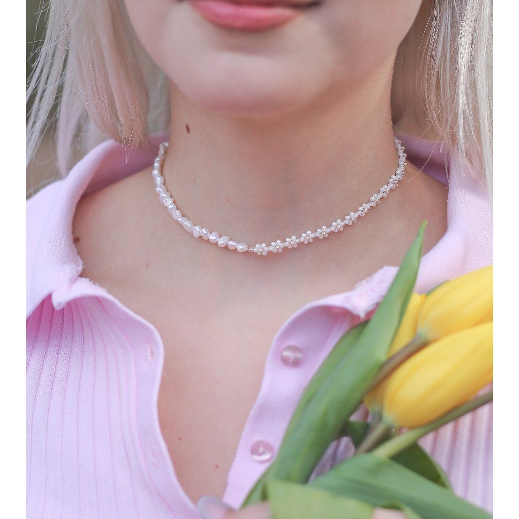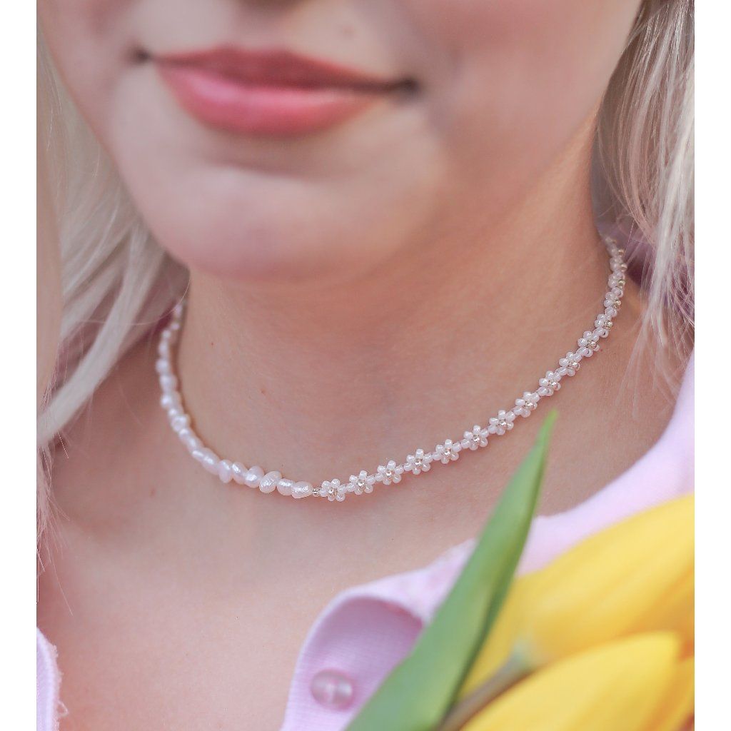 Choker - ,,Sofia" perlový, stříbrné detaily