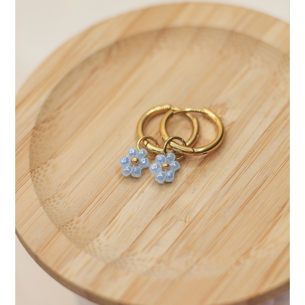 Náušnice - nebesky modrá, zlaté detaily