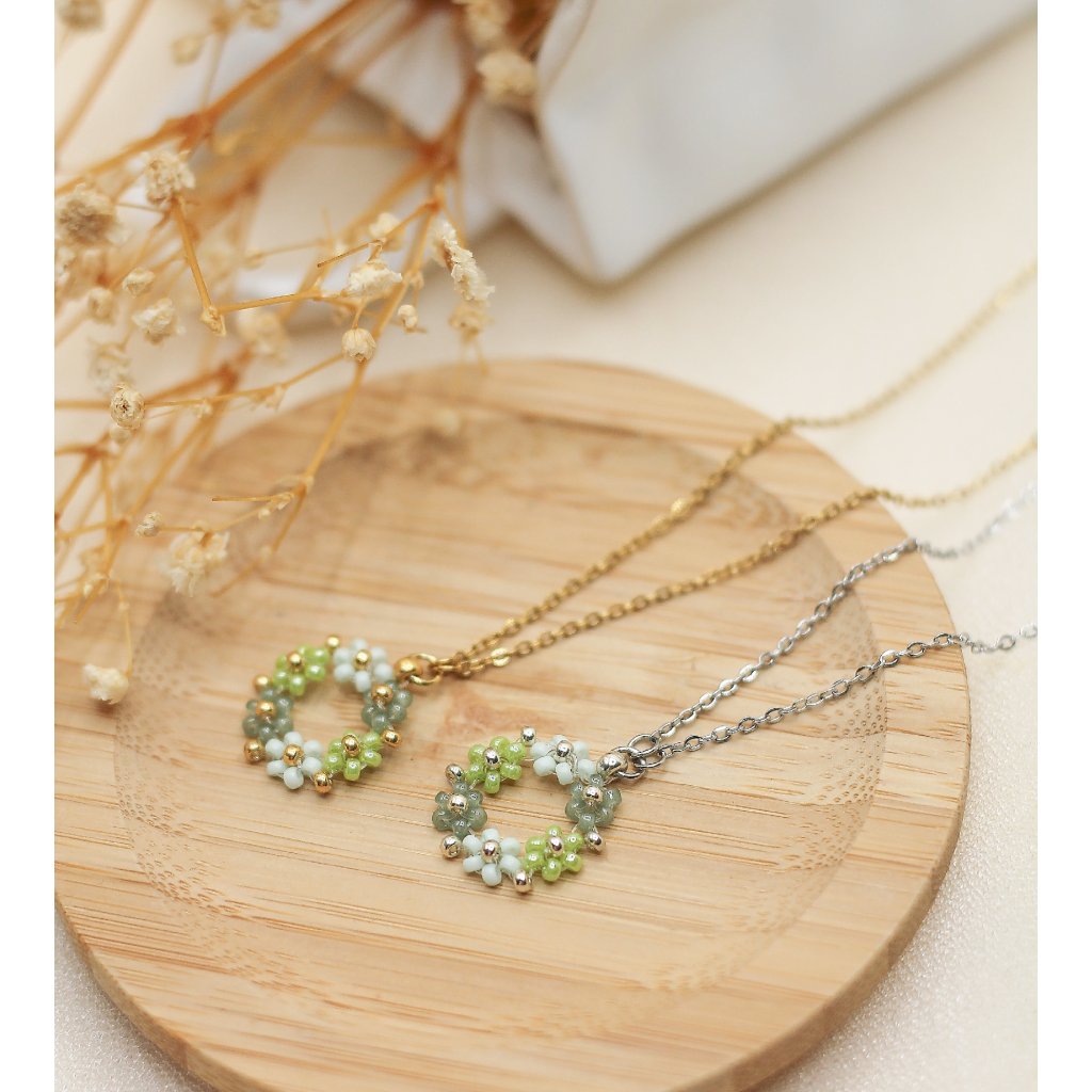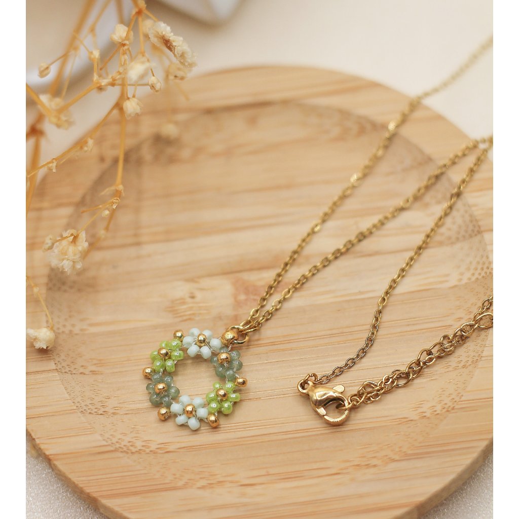 Používané materiály: Japonský rokajl MIYUKI(2mm, 3mm), pevný vlasec, zlaté nebo stříbrné detaily z nerezové oceli.