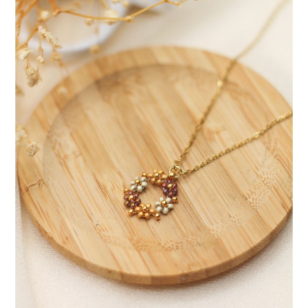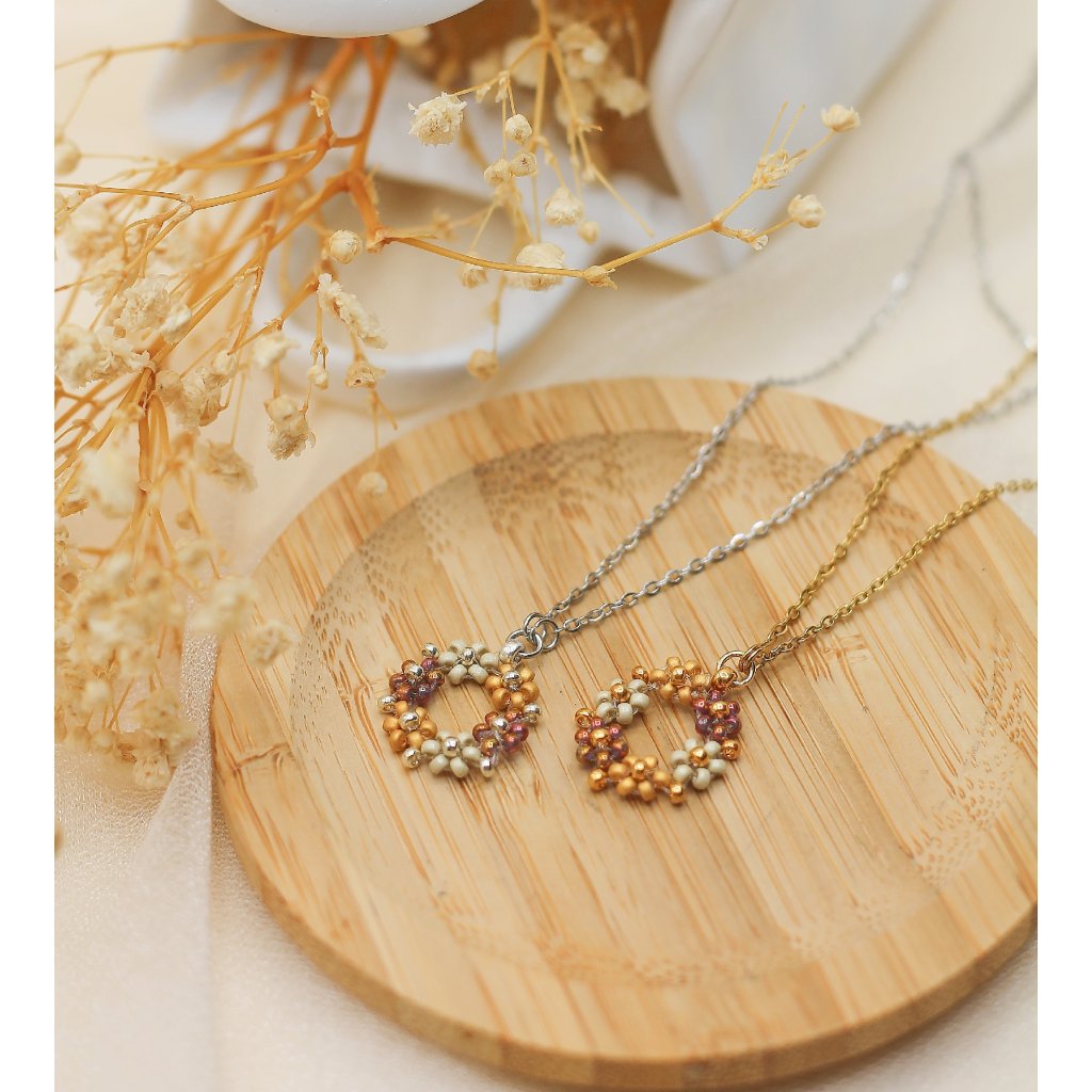 Používané materiály: Japonský rokajl MIYUKI(2mm, 3mm), pevný vlasec, zlaté nebo stříbrné detaily z nerezové oceli.
